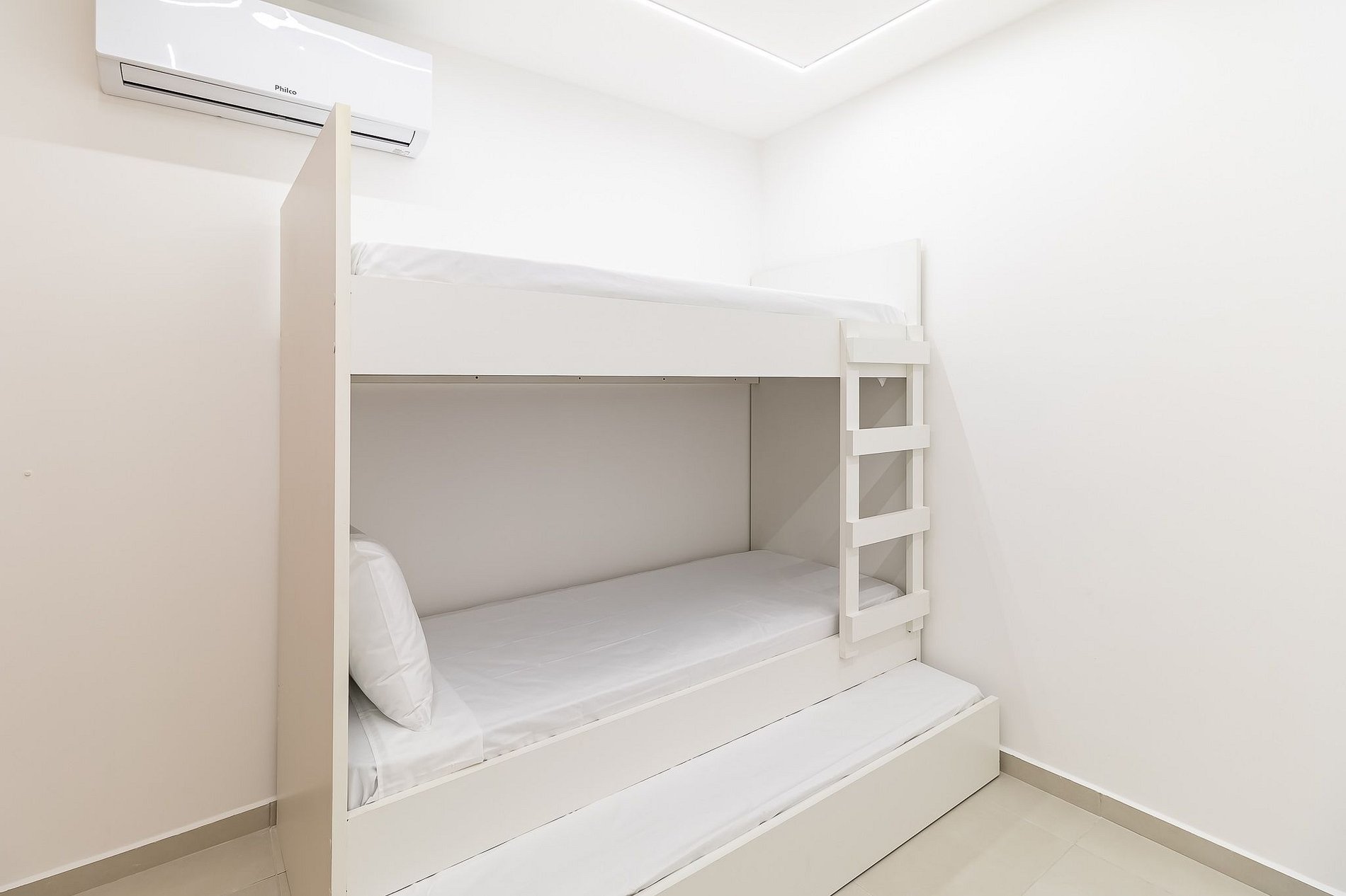 Ambientes climatizados, cozinha equipada e a salas de estar e jantar aconchegante garantem o conforto necessário. A Suíte com cama queen, a suíte inversa com beliche e cama auxiliar (casal) e as duas suíte inversa com beliche e cama auxiliar (solteiro) são cuidadosamente projetados para proporcionar noites de sono reparadoras. A lavadora lava e seca acrescenta praticidade à estadia.